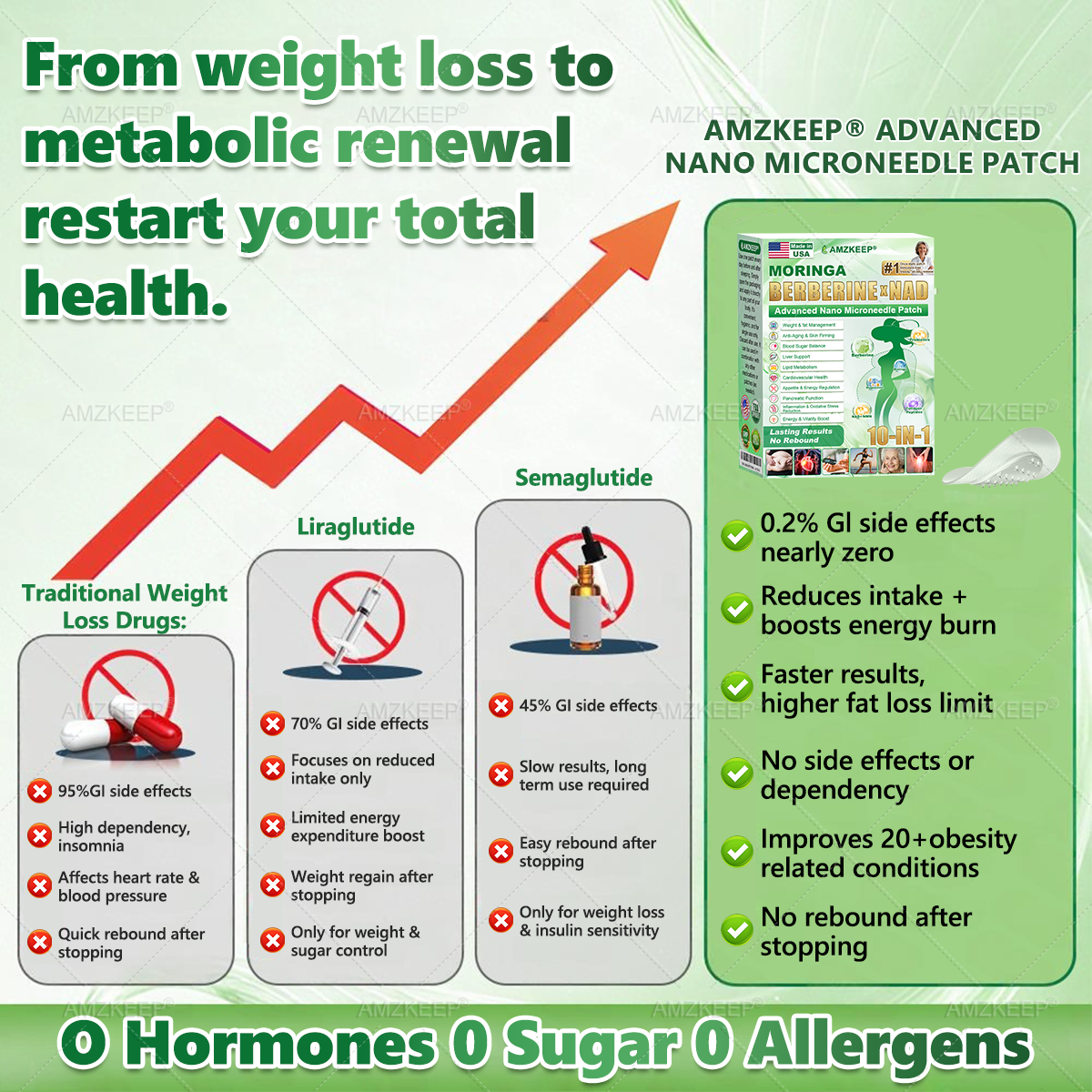 This advanced patch is formulated to support healthy weight loss, balance blood sugar, boost metabolism, and promote overall vitality, all through a simple, convenient, and non-invasive approach.